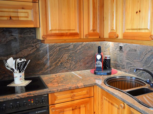 Wohn- Essraum mit ausziehbarem Schlaf/Sofa, Sat-TV, Radio DAB+, Wireless/LAN. Offene komfortable Wohnküche komplett eingerichtet ,Geschirrspüler ,Mikrowelle, zusätzlicher Gefrierschrank ,Toaster , Raclette-Set, Fondue-Set, Filter- und Kapsel Kaffeemaschine (Nespresso Kapseln erhältlich im Dorf)Mixer,